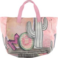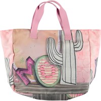 Strandtaske i lækker kraftig kanvas med print af skilte i pastelfarver og brede pink stropper. Tasken har god plads til alt det nødvendige en dag på stranden kræver.