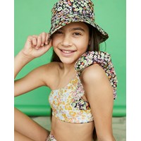 Småblomstret bøllehat med bred skygge og UV beskyttelse 50+, som beskytter barnet mod solen. Bøllehatten er et uundværligt sommer accessoires og liver et hvert outfit op. Solhatten er her med tigerstribeprint.