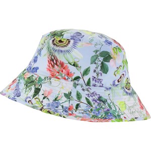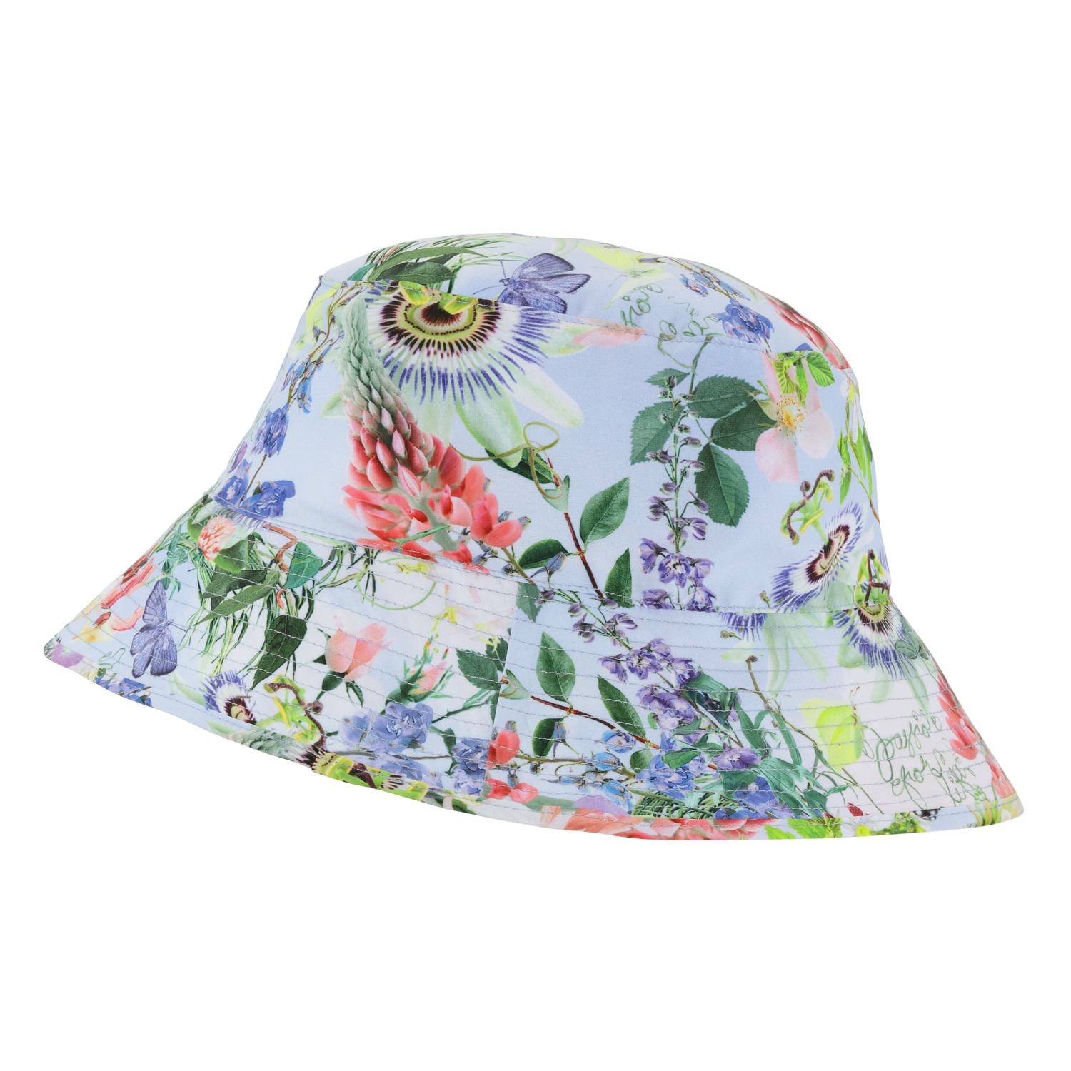 Lyseblå blomstret bøllehat med bred skygge og UV beskyttelse 50+, som beskytter barnet mod solen. Bøllehatten er et uundværligt sommer accessoires og liver et hvert outfit op. Solhatten er her med tigerstribeprint.
