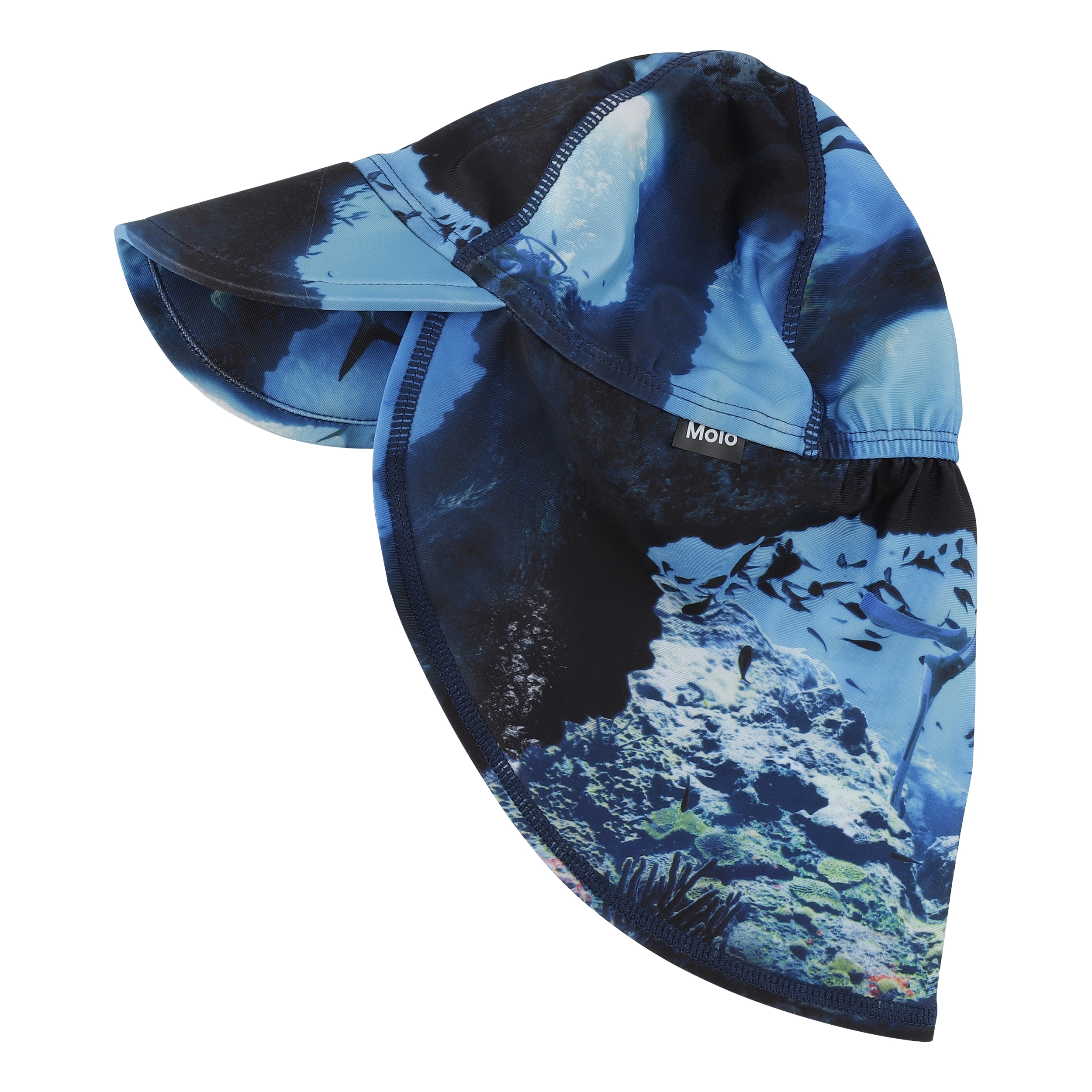 Solhat med UV beskyttelse 50+, bred skygge og længde i nakken, som beskytter dit barn på bedste måde. Solhatten er med printet 'Cave Camo'.