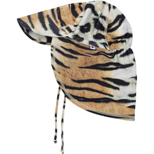 Solhat med UV beskyttelse 50+, bred skygge og længde i nakken, som beskytter barnet på bedste måde. Solhatten er med fint print af strandskaller.