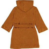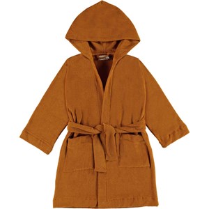 Wyn er en økologiske blød badekåbe i en let og tætvævet blød brun frotté. Kåben har to lommer, bindebånd i taljen samt en stor hætte til at holde nakken og hovedet ekstra varmt.