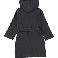 Dejlig blød badekåbe i en let og tætvævet mørkeblå frotté. Kåben har to lommer, bindebånd i taljen samt en stor hætte til at holde nakken og hovedet ekstra varmt.