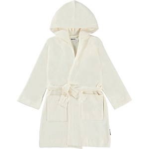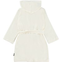 Wyn er en dejlig blød badekåbe i en let og tætvævet off-white frotté. Kåben har to lommer, bindebånd i taljen samt en stor hætte til at holde nakken og hovedet ekstra varmt.