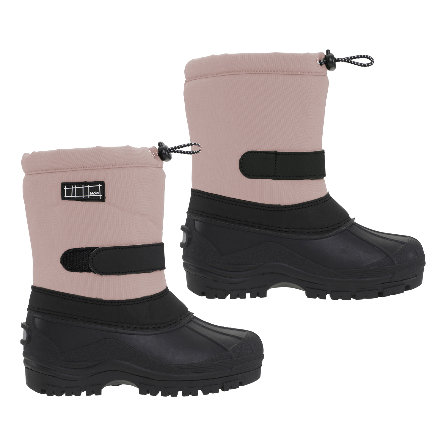 Praktiske lyserøde vinterstøvler med velcrolukning, samt en chunky sort sål. Støvlerne har en god højde og egner sig godt til alt slags vejr. Derudover matcher støvlerne med Molo’s overtøj i farver og print.