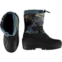 Vinterstøvle i funktionelt polyester med justerbar lukning i skaftet og en sål af blød gummi, der fortsætter op omkring foden. Støvlen er med print af fremtids dyr. Både sål og skaft er vandtætte hver for sig. Støvlen har en indvendig, udtagelig, kraftig polyestersok, der gør støvlen anvendelig til både de koldere og lunere perioder. Dette produkt har en vandafvisende PFC-fri imprægnering (indeholder f.eks. ikke PFOS, PFOA og lignende). Vandsøjletryk: 10.000 mm. Åndbarhed: 8.000 g/m2/24t