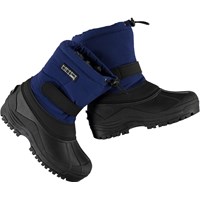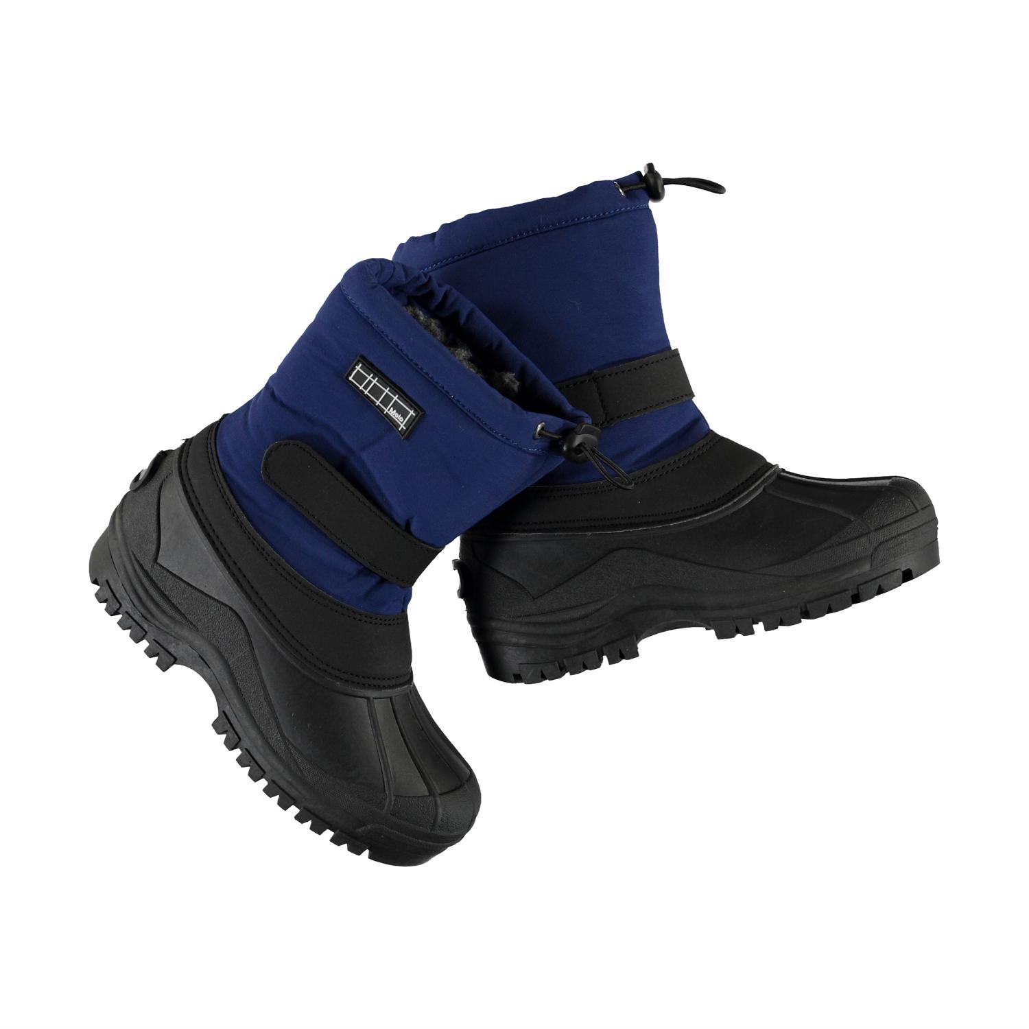 Blå vinterstøvle i funktionelt polyester med justerbar lukning i skaftet og en sål af blød gummi, der fortsætter op omkring foden. Både sål og skaft er vandtætte hver for sig. Støvlen har en indvendig, udtagelig, kraftig polyestersok, der gør støvlen anvendelig til både de koldere og lunere perioder. Dette produkt har en vandafvisende PFC-fri imprægnering (indeholder f.eks. ikke PFOS, PFOA og lignende). Vandsøjletryk: 10.000 mm. Åndbarhed: 8.000 g/m2/24t