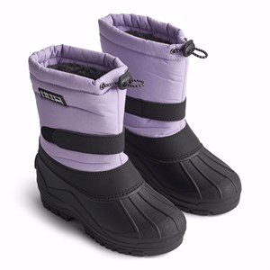 Praktiske vinterstøvler i lyse lilla med en kraftig og skridsikker sort sål . Støvlerne har en justerbar elastik øverst i skaftet, justerbar velcro omkring anklen, en indevendig sok samt en god højde og egner sig derfor godt til alt slags vejr.