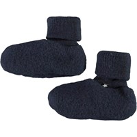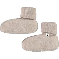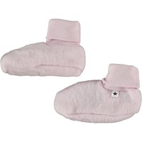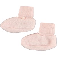 Grønne babyfutter i blød fleece-kvalitet af 100% merinould. Futterne har tætsluttende ribkanter med opsmøg ved anklen og et sødt, broderet potemotiv under foden.
