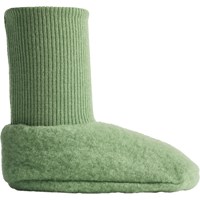 Grønne babyfutter i blød fleece-kvalitet af 100% merinould. Futterne har tætsluttende ribkanter med opsmøg ved anklen og et sødt, broderet potemotiv under foden.