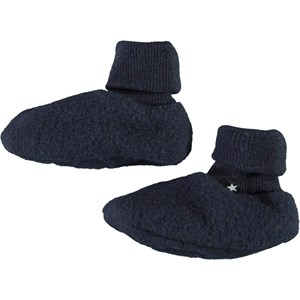 Blå babyfutter i uld, som varmer på de mindste fødder.