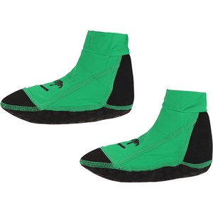 Grønne og sorte badesokker med frontprint af en glad emoji med palme-øjne. De giver god beskyttelse til små fødder mod skarpe genstande og varmt sand. De er fremstillet af genanvendt, elastisk polyester, hvilket gør dem nemme at tage af og på. Molo's badetøj har en høj UV-beskyttelse på 50+."