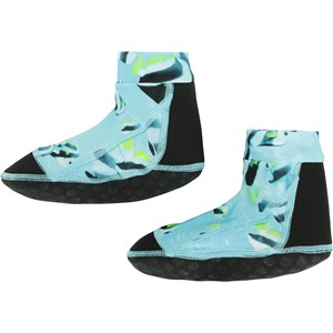 Neopren badesokker, som beskytter de små fødder mod skarpe genstande og varmt sand. Disse badesokker er i tyrkis med print af fisk.