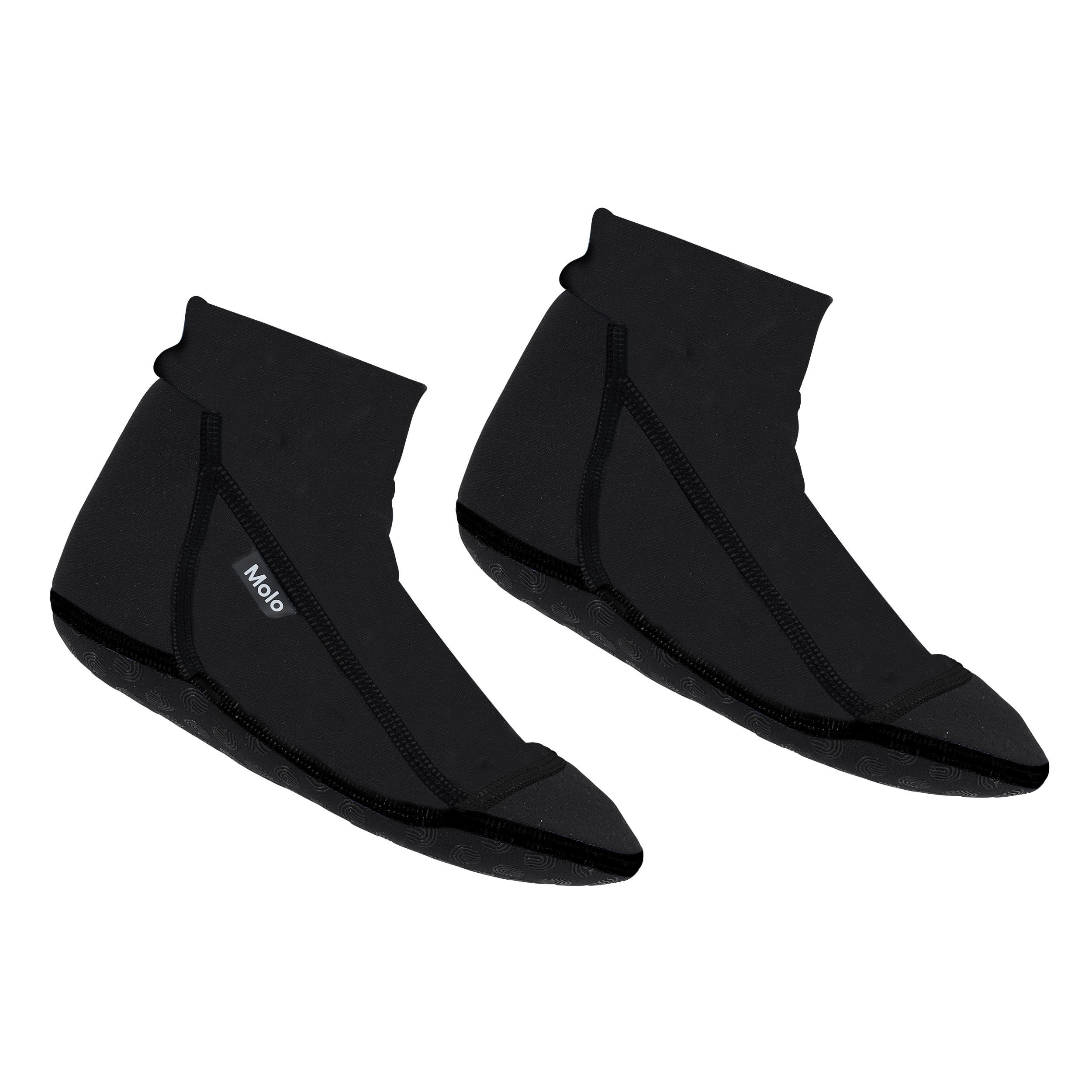 Sorte neopren badesokker, som beskytter de små fødder mod skarpe genstande og varmt sand.