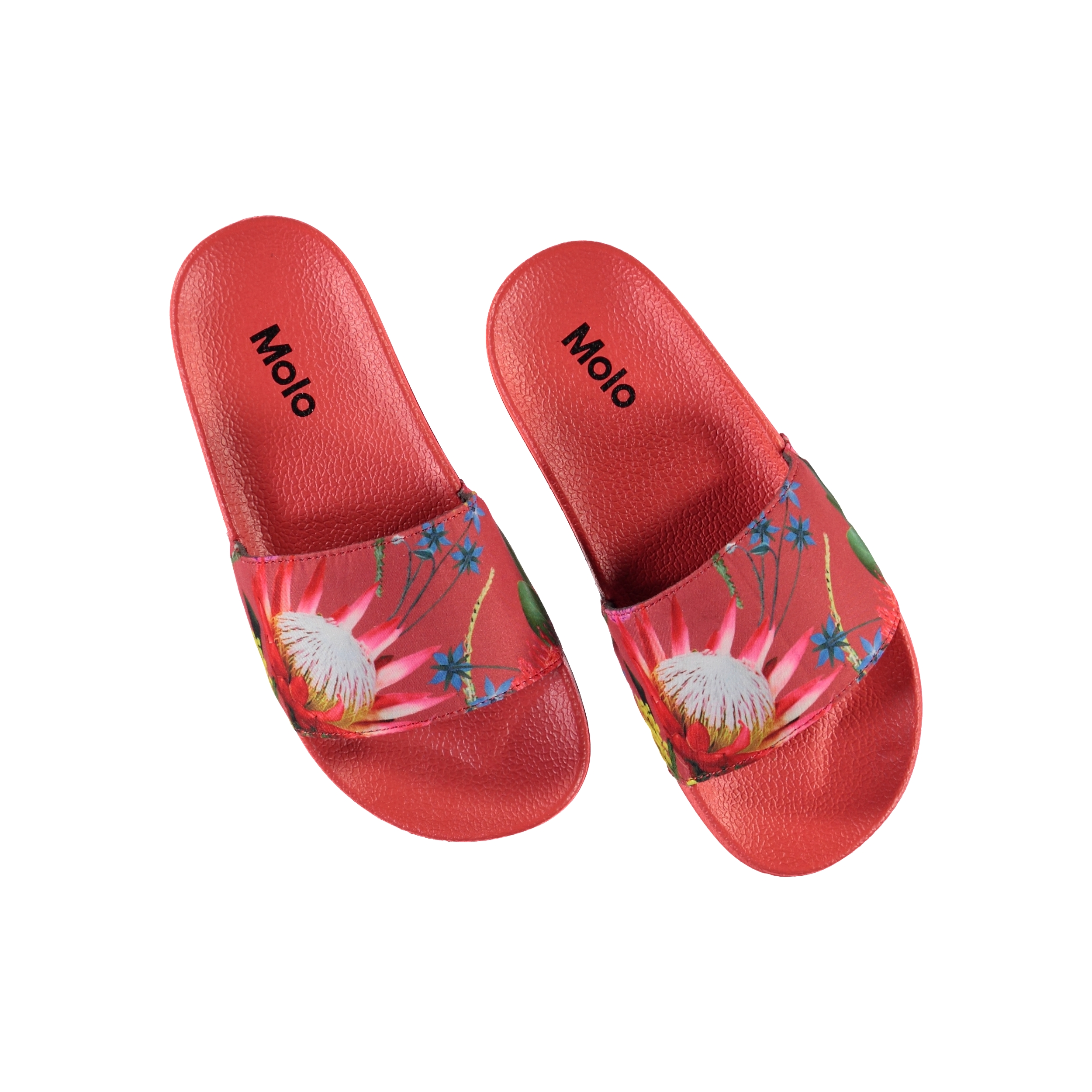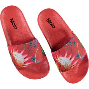 Molo's Zhappy sandaler er et must i sommervarmen når tæerne skal luftes. Disse slippers er i rød med print af australske blomster.