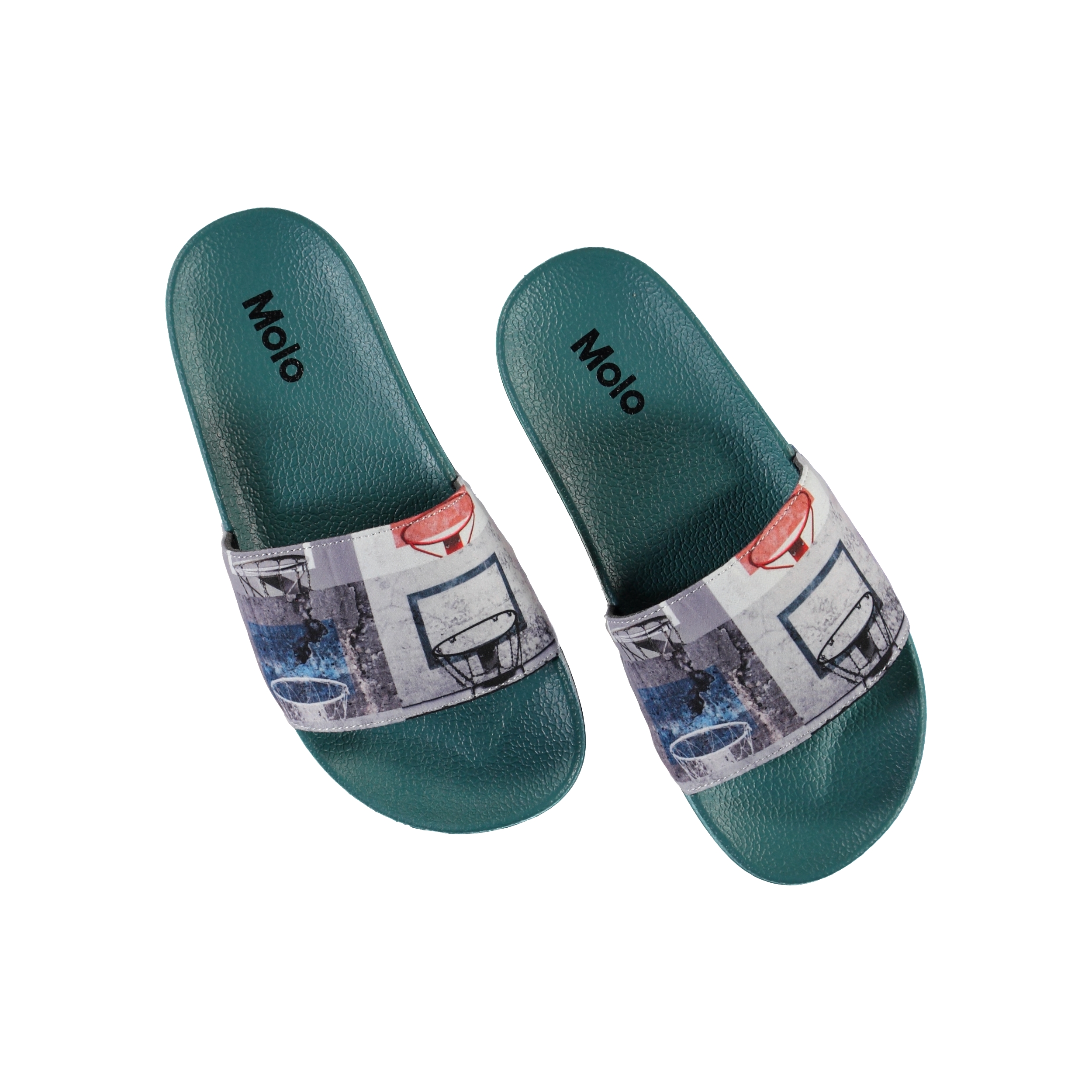 Molo's Zhappy sandaler er et must i sommervarmen når tæerne skal luftes. Disse slippers er i blå med basket print.