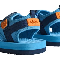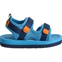 Let og sporty sandal i blå med orange detaljer, blød skumsål, neoprenpaneler og praktisk velcrolukning ved ankel og forfod, der sikrer optimal pasform.