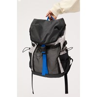 Praktisk rygsæk med spændelukning i sort og blå. Rygsækken er rummelig og har masser af plads til bøger, hæfter, penalhus, madkasse og en bærbar computer eller tablet i den polstrede lomme. Derudover har den en lynlåslomme på fronten, flaskelommer på begge sider og vatterede ryg- og skulderstropper. Den har også en justerbar brystrem, der hjælper med at fordele vægten jævnt. Rygsækken har dimensionerne 40,5 x 18 x 30 cm.