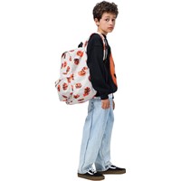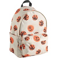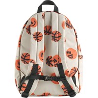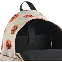 Beige rygsæk med orange basketballprint. Har polstret lomme til computer eller tablet, lynlåslomme foran, flaskelommer i siderne og vatterede stropper. Justerbar brystrem og skulderstropper, sikrer god komfort og vægtfordeling. Dimensioner: 30 x 17 x 42. Volumen: 21L.