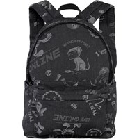 Sort rygsæk med jacquardvævet mønster med comic-figurer. Rygsækken har masser af opbevaringsplads, herunder en polstret lomme, der beskytter din computer eller tablet. Den er udstyret med en lynlåslomme på fronten, flaskelommer på begge sider og vatterede ryg- og skulderstropper. Derudover har den en justerbar brystrem, som sikrer en jævn vægtfordeling. Dimensioner: 30 x 17 x 42 cm. Volumen: 21L.