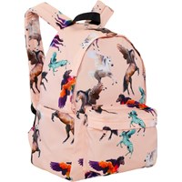 Lyserød rygsæk med et flot print af farverige og flyvende heste, nemlig Pegasus'er. Rygsækken har masser af opbevaringsplads, herunder en polstret lomme, der beskytter din computer eller tablet. Den er udstyret med en lynlåslomme på fronten, flaskelommer på begge sider og vatterede ryg- og skulderstropper. Derudover har den en justerbar brystrem, som sikrer en jævn vægtfordeling. Rygsækken har dimensionerne 30 x 17 x 42 cm og en volumen på 21L.