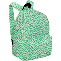 Rygsæk med et allover leopardprint i grøn. Rygsækken har masser af opbevaringsplads, herunder en polstret lomme, der beskytter din computer eller tablet. Den er udstyret med en lynlåslomme på fronten, flaskelommer på begge sider og vatterede ryg- og skulderstropper. Derudover har den en justerbar brystrem, som sikrer en jævn vægtfordeling. Dimensioner: 30 x 17 x 42. Volumen: 21L.