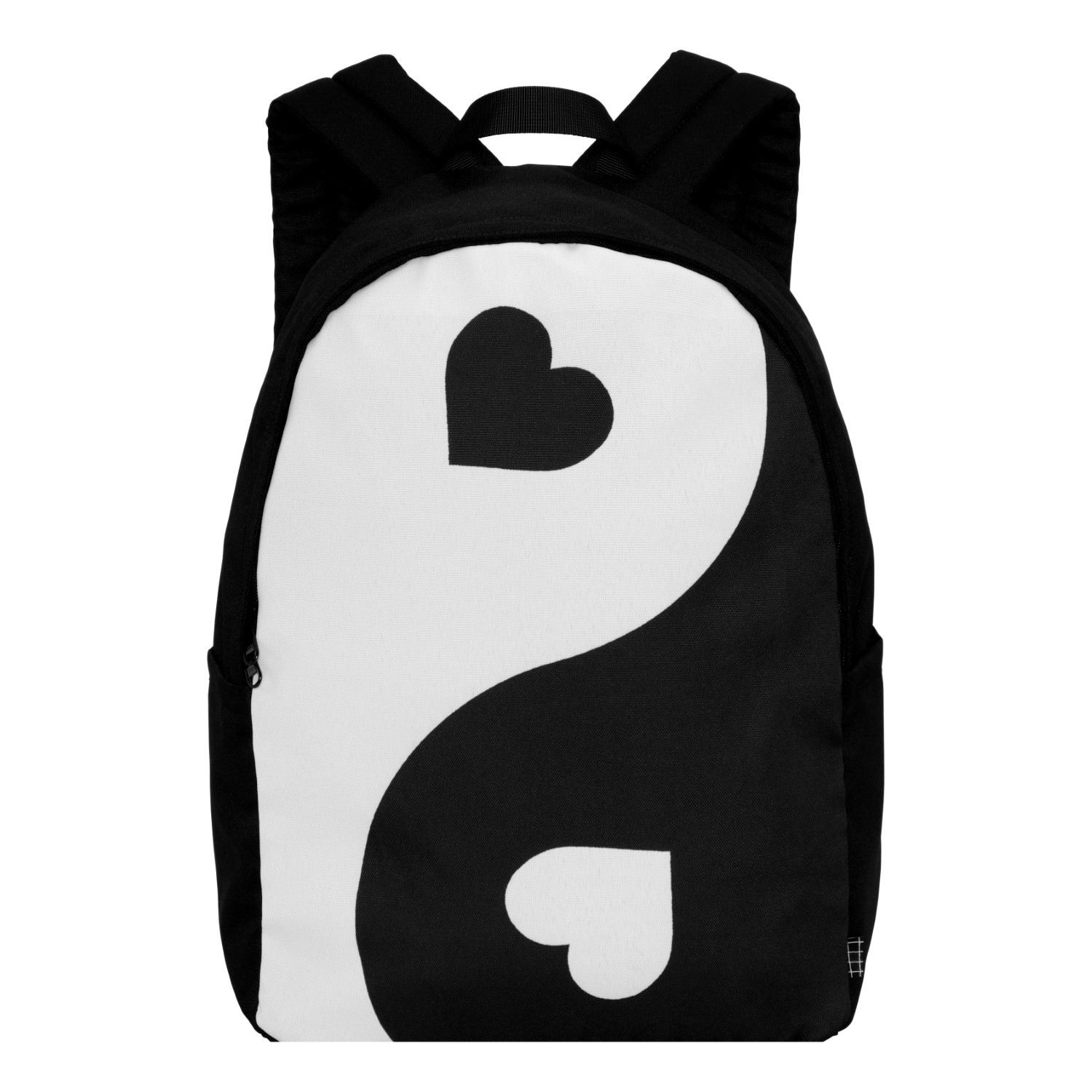 Sort rygsæk med hvidt Yin og Yang-motiv på fronten. Rygsækken har masser af opbevaringsplads, herunder en polstret lomme, der beskytter din computer eller tablet. Den er udstyret med flaskelommer på begge sider og vatterede ryg- og skulderstropper. Derudover har den en justerbar brystrem, som sikrer en jævn vægtfordeling. Dimensioner: 30 x 17 x 42. Volumen: 21L.