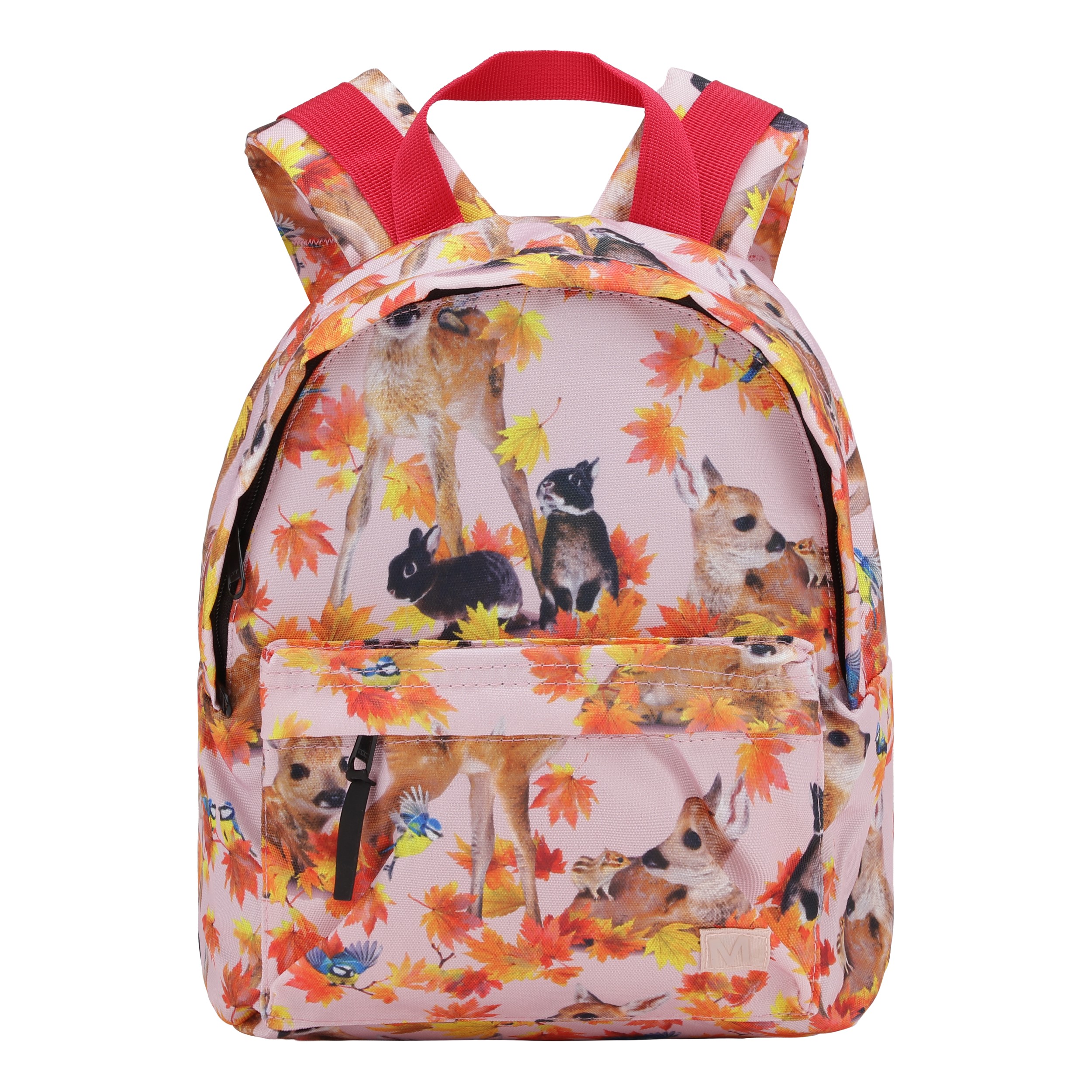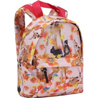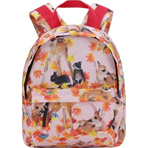 Rygsæk i lyserød med print af kaniner og rådyr. Rygsækken har en udvendig lomme, spænde foran brystet, hank, samt justerbare stropper. Dette Molo produkt er recycled og fremstillet af genanvendeligt polyester, som er produceret af brugte plastikflasker og andet restaffald. Produktionen af genanvendt polyester kræver langt færre ressourcer og udleder mindre CO2, hvorfor Molo’s recycled rygsække er det bæredygtige valg. Rygsækken måler 25 cm i bredden og 30 cm i højden og egner sig specielt til mindre børn.