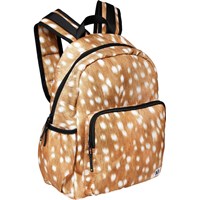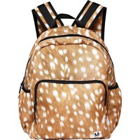 Rummelig rygsæk i brun med print af hvide pletter. Rygsækkens materiale er fremstillet af recycled polyester. Rygsækken har en udvendig frontlomme med lynlås, lommer i begge sider til eksempelvis en drikkedunk, vatteret ryg, strop til ophæng samt justerbare skulderstropper. Dette Molo produkt er recycled og fremstillet af genanvendeligt polyester, som er produceret af brugte plastikflasker og andet restaffald. Produktionen af genanvendt polyester kræver langt færre ressourcer og udleder mindre CO2, hvorfor Molo’s recycled rygsække er det bæredygtige valg.