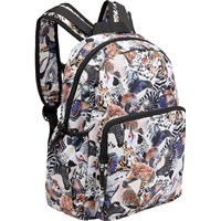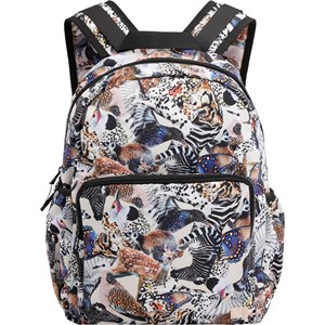 Rummelig rygsæk med print af forskellige dyr, som sammen danner et flot mønster. Rygsækkens materiale er fremstillet af recycled polyester. Rygsækken har en udvendig frontlomme med lynlås og 'M-3' label, lommer i begge sider til eksempelvis en drikkedunk, vatteret ryg, strop til ophæng samt justerbare skulderstropper.