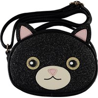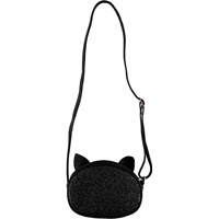 Sort crossbody taske med sødt katte motiv på fronten. Tasken har justerbar skulderrem.