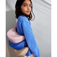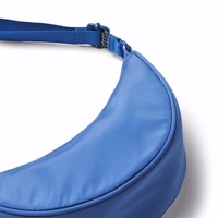 Blå taske med halvmåneform og justerbar skulderrem, så den kan bæres over skulderen, brystet eller crossbody. Tasken har et hovedrum og lukkes med lynlås. Tasken har et hovedrum og lukkes med lynlås. Dimensioner 24 x 14 x 8