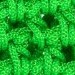 Lille, grøn skuldertaske, hæklet af et robust polyestergarn. Tasken er uforet og har en åben top med skulderstropper. Måler 21 cm i bredden og 25 cm i højden.