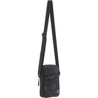 Lille crossbody taske i grå denim med print af smileyer. Skulderstroppen kan justeres i længden og tasken lukkes med lyslås i toppen.
