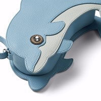 Delfintaske i blå nuancer med lynlåslukning. Tasken har justerbar strop og er 20 cm. i bredden.