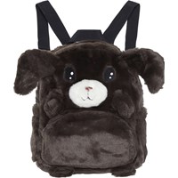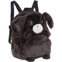 Brun pelset rygsæk i faux-fur med et sødt kaninmotiv på fronten. Rygsækken har påsyede ører og poter, en udvendig frontlomme med lynlås, lommer på begge sider, strop til ophæng samt justerbare skulderstropper. Rygsækken måler 24 cm i bredden og 29 cm i højden og er specielt ideel til mindre børn.