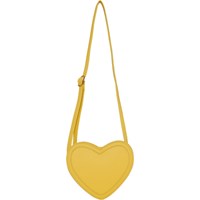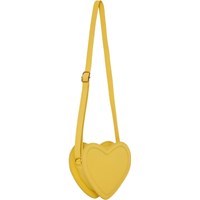 Gul, hjerteformet taske i imiteret læder med justerbar skulderrem og lynlås.
