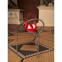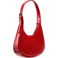 Denne røde skuldertaske har en buet form og en flot lakfinish. Tasken er udstyret med en praktisk lynlås og en justerbar strop, så du kan tilpasse den efter dine behov.