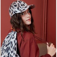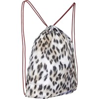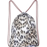 Cool gymnastik taske i sneleopard print med brune snorer til at snøre tasken sammen.