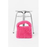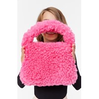 Lyserød håndtaske i teddykvalitet med magnetlukning.