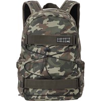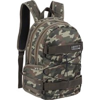 Rummelig rygsæk i camouflage print og med justerbare elastikker på fronten. Rygsækken er opdelt i to rum med lynlås og har lommer i siderne, hvor der er plads til en drikkedunk.