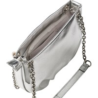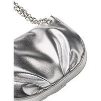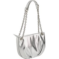 Sølvfarvet skuldertaske med kædehank og praktisk lynlåslukning. Måler 25 cm i bredden og 13,5 cm i højden.