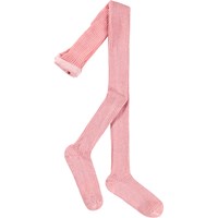 Lyserøde finstrikkede ribstrømpebukser lavet af bomuld med glitter i. Elastik i taljen sikrer en behagelig pasform.