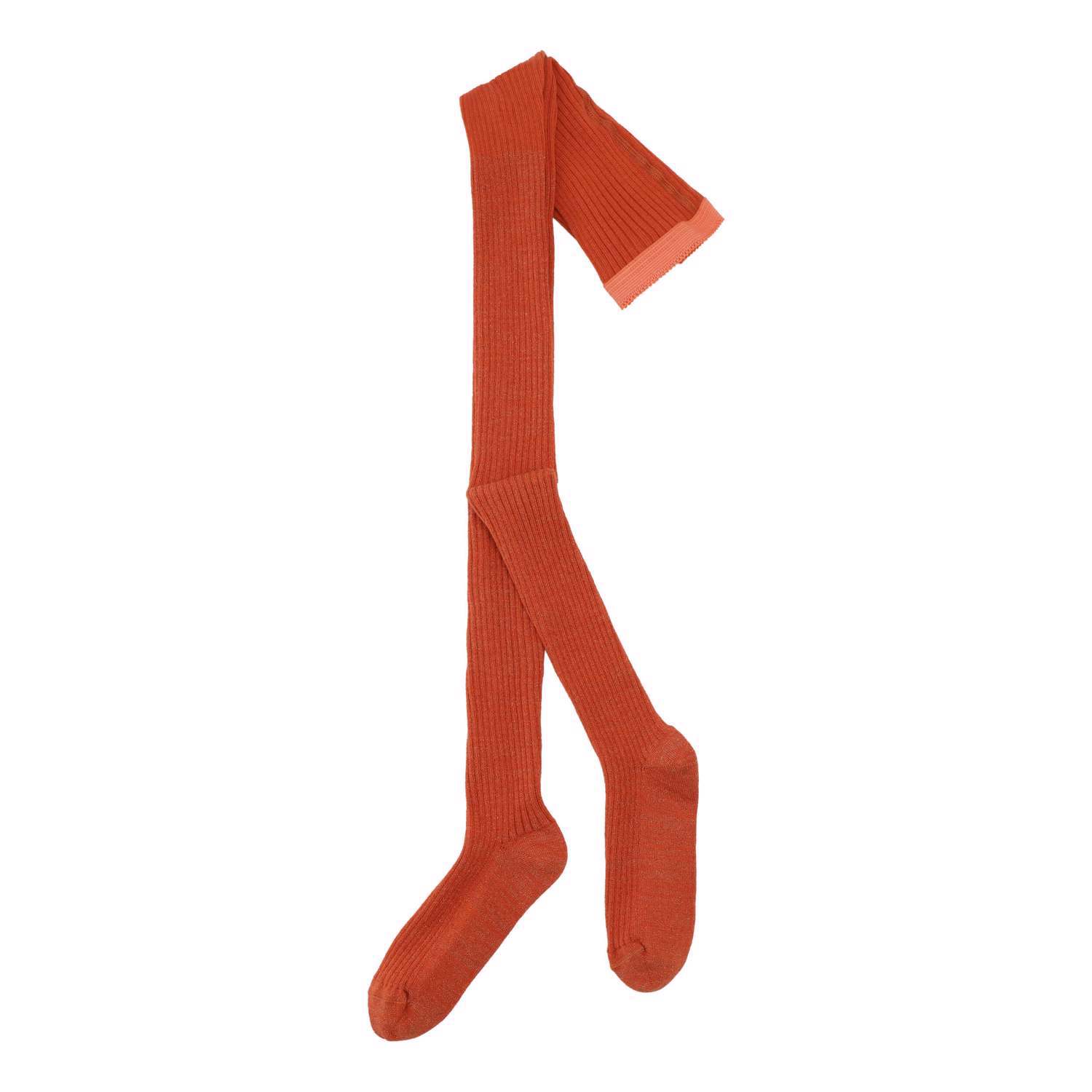 Rustrøde strømpebukser med glimmer i rib og elastisk talje for god komfort.