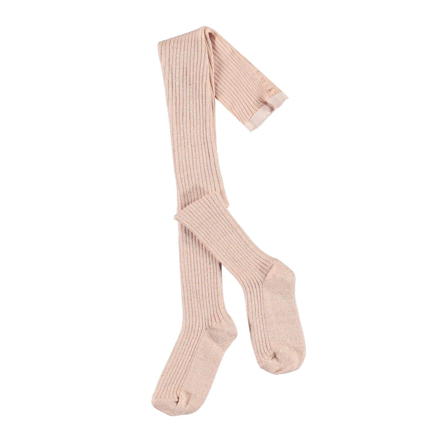 Rosa strømpebukser med glimmer i rib og elastisk talje for god komfort.