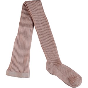 Lyserøde ribbede strømpebukser med glimmer og elastisk talje for god komfort.