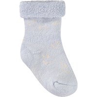2-pak babysokker i viskose. Sokkerne er henholdsvis lyseblå med små beige smilende ansigter og beige med et smilende ansigt.