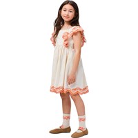 2-pak finstrikkede strømper i bomuld med ribkant foroven. Pakken indeholder to par cremefarvede strømper, et med orange mønster og et med blåt.
