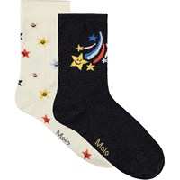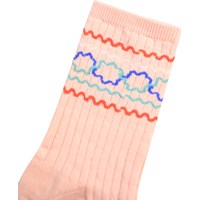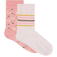 2-pak finstrikkede strømper i bomuld med ribbet kant foroven for bedre pasform. Pakken indeholder et par røde sokker samt et par rosa.