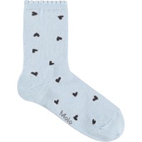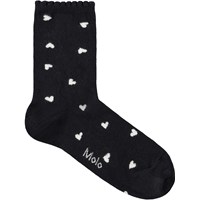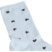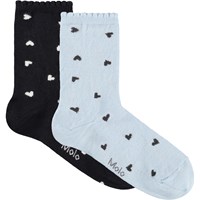 2-pak finstrikkede strømper i bomuld med bølget dekorativ kant foroven. Pakken indeholder et par sorte og et par blå strømper med hjerter.